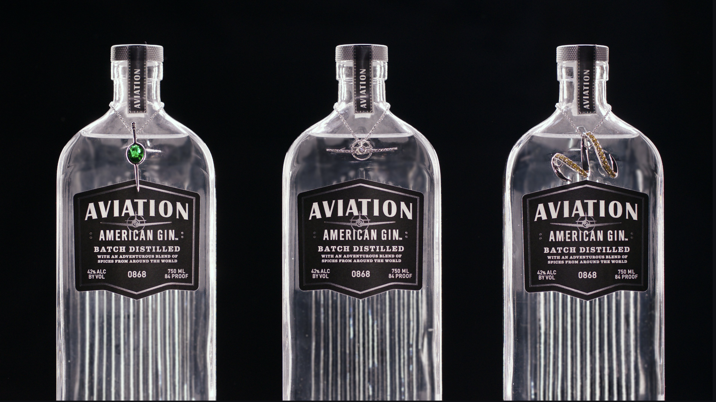 An open bottle of Aviation Gin inspires Jane Seymour to make a new jewelry collection.